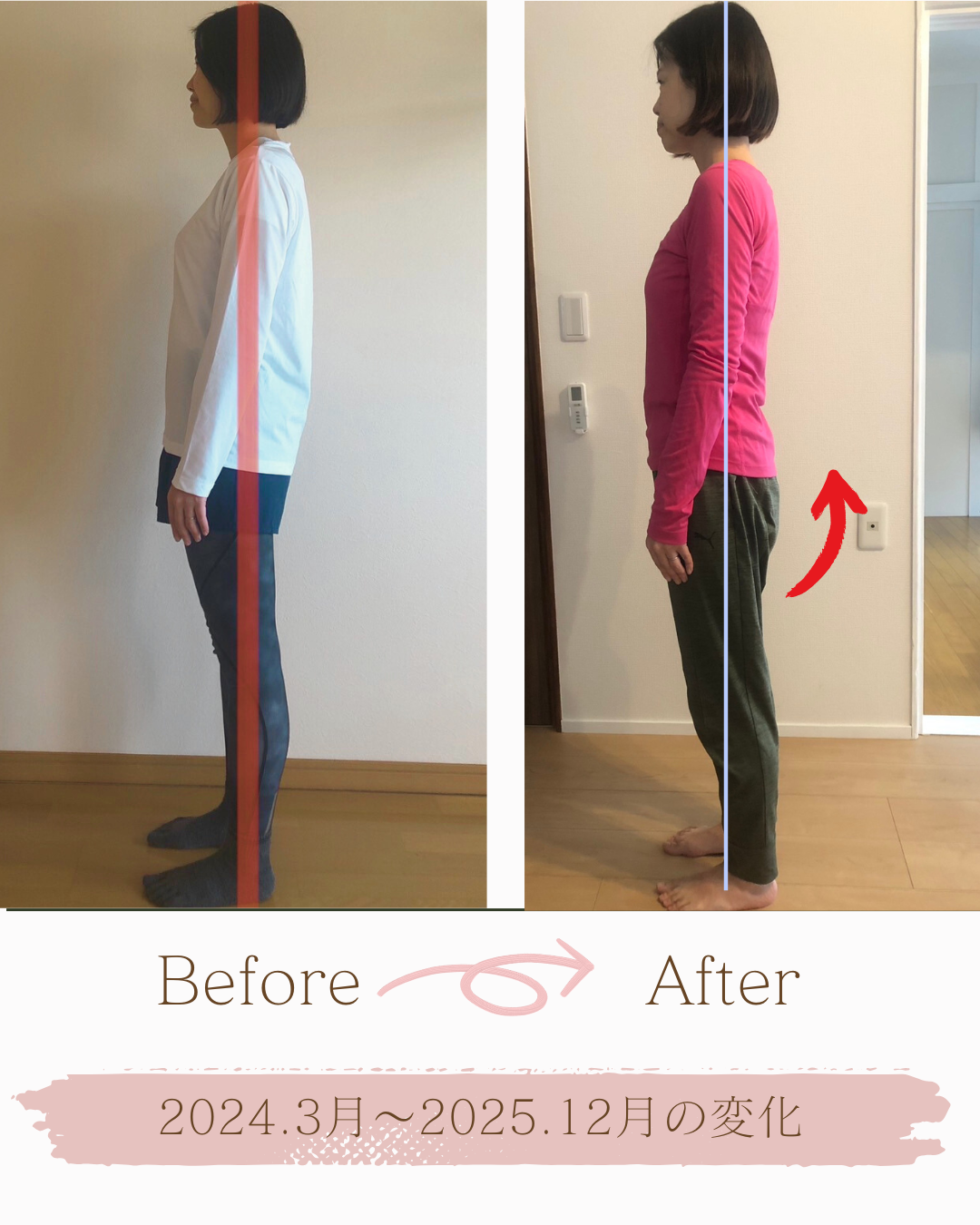 1回のレッスンで不調がなくなるだけでなく、こんなに見た目も変わるなんて嬉しい!とご好評いただいております。